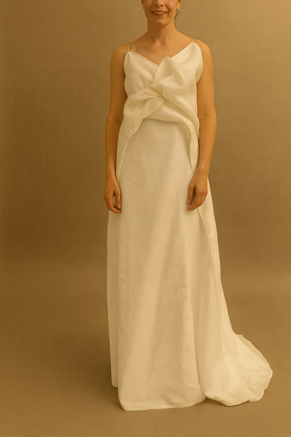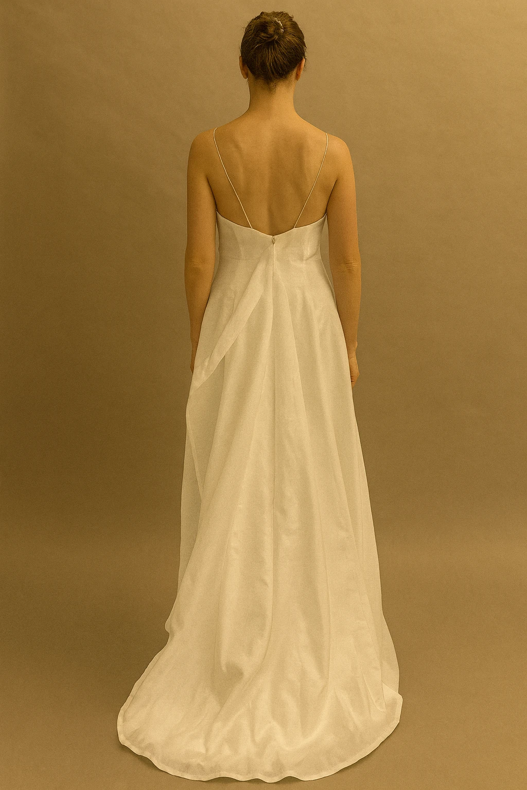 El vestido Magnolia es una creación absolutamente artesanal, creada y modelada directamente sobre el maniquí para dar forma al volumen del corpiño que envuelve con suavidad la silueta. Su construcción es tan singular que resulta prácticamente irrepetible, configurándose como una pieza única en sí misma.